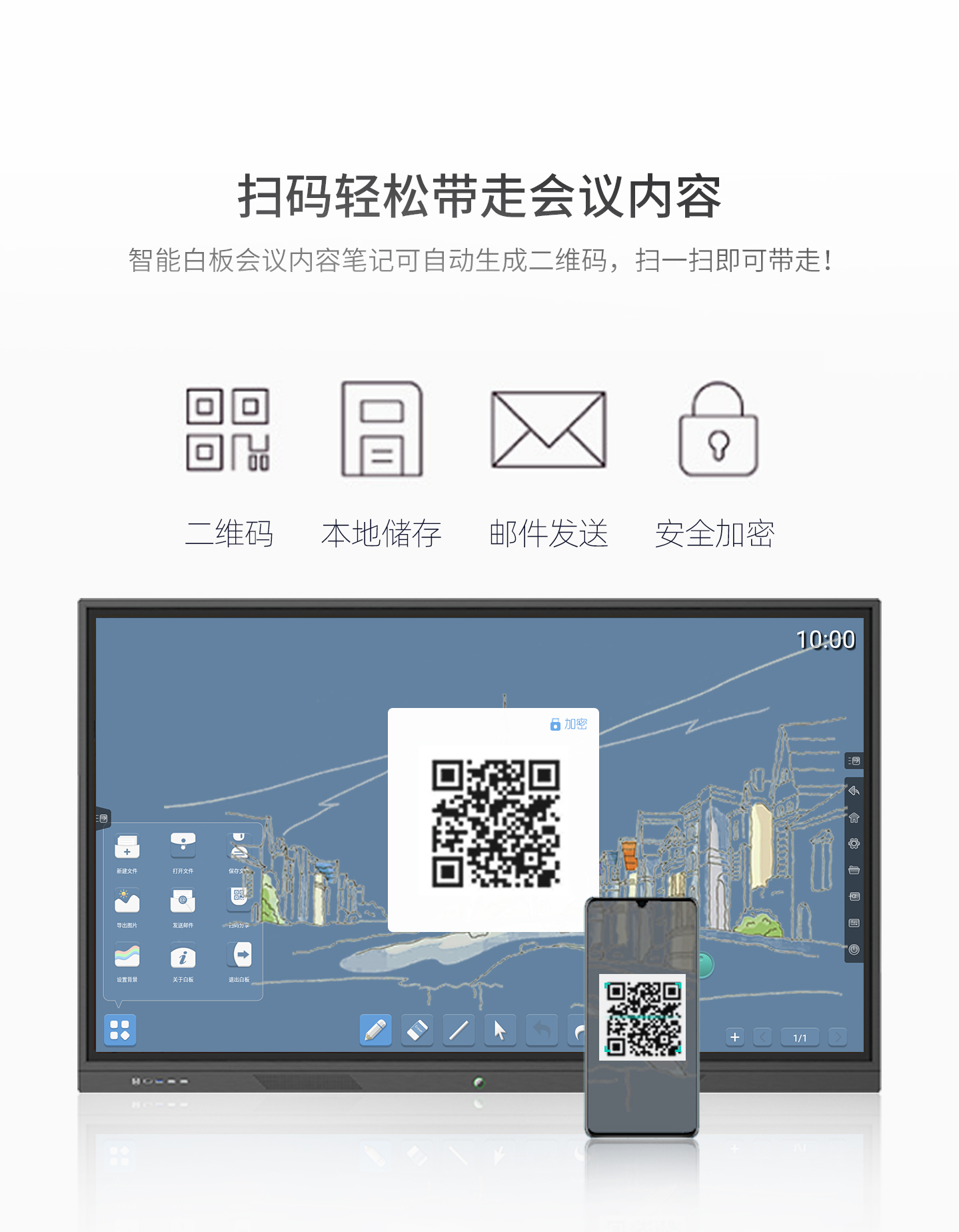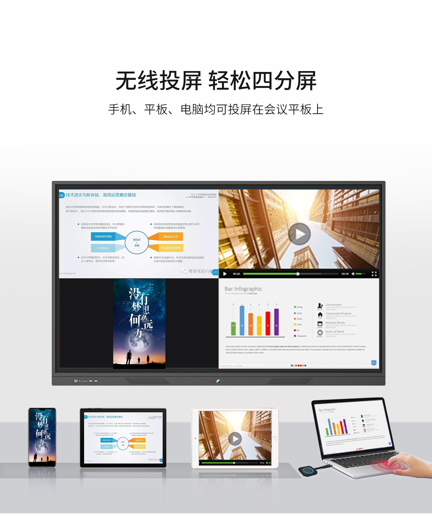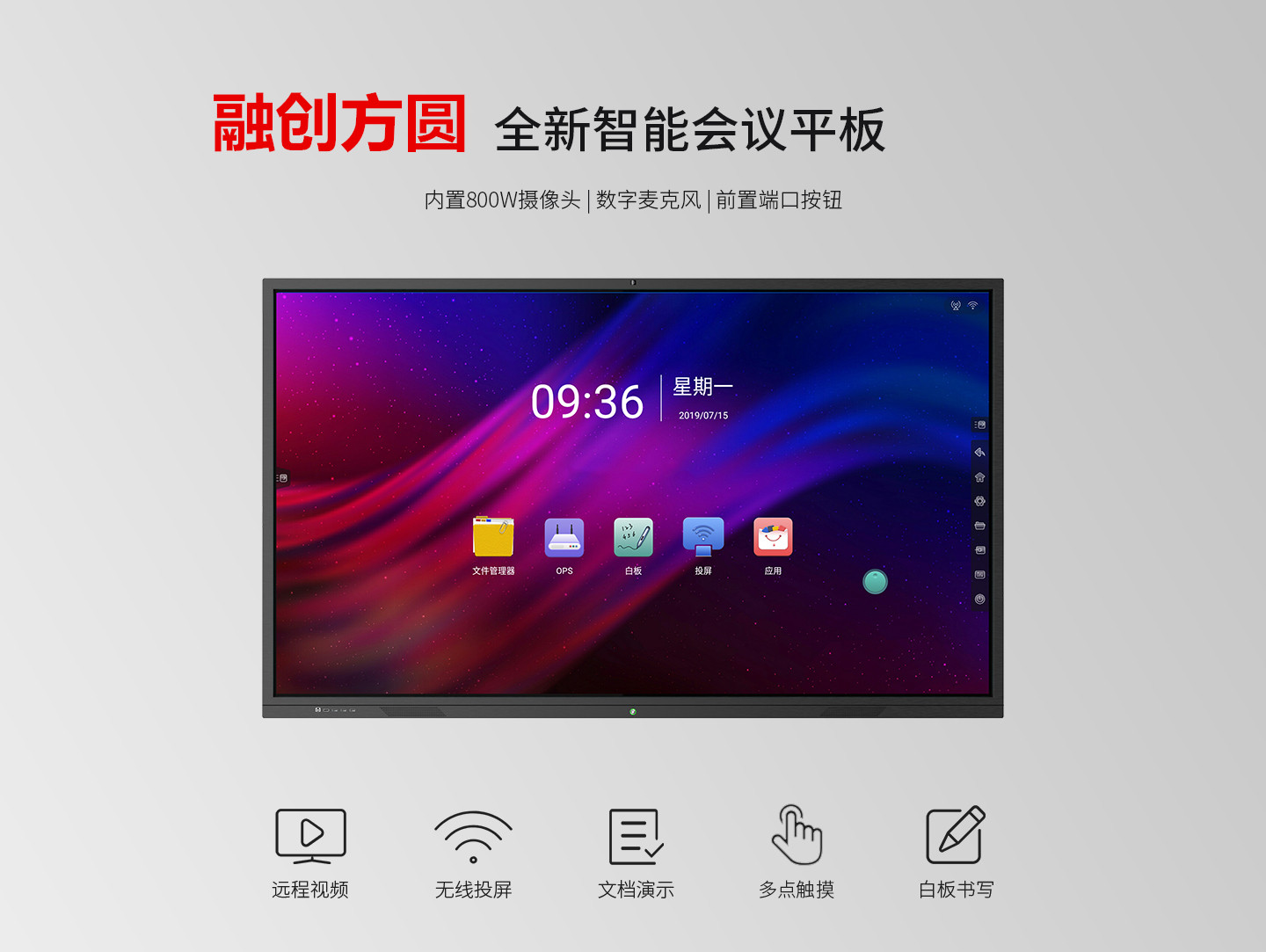 產(chǎn)品功能:遠(yuǎn)程視頻、無線投屏、多屏互動(dòng)、掃碼帶走、白板書寫、文檔演示、智能批注、多點(diǎn)觸摸