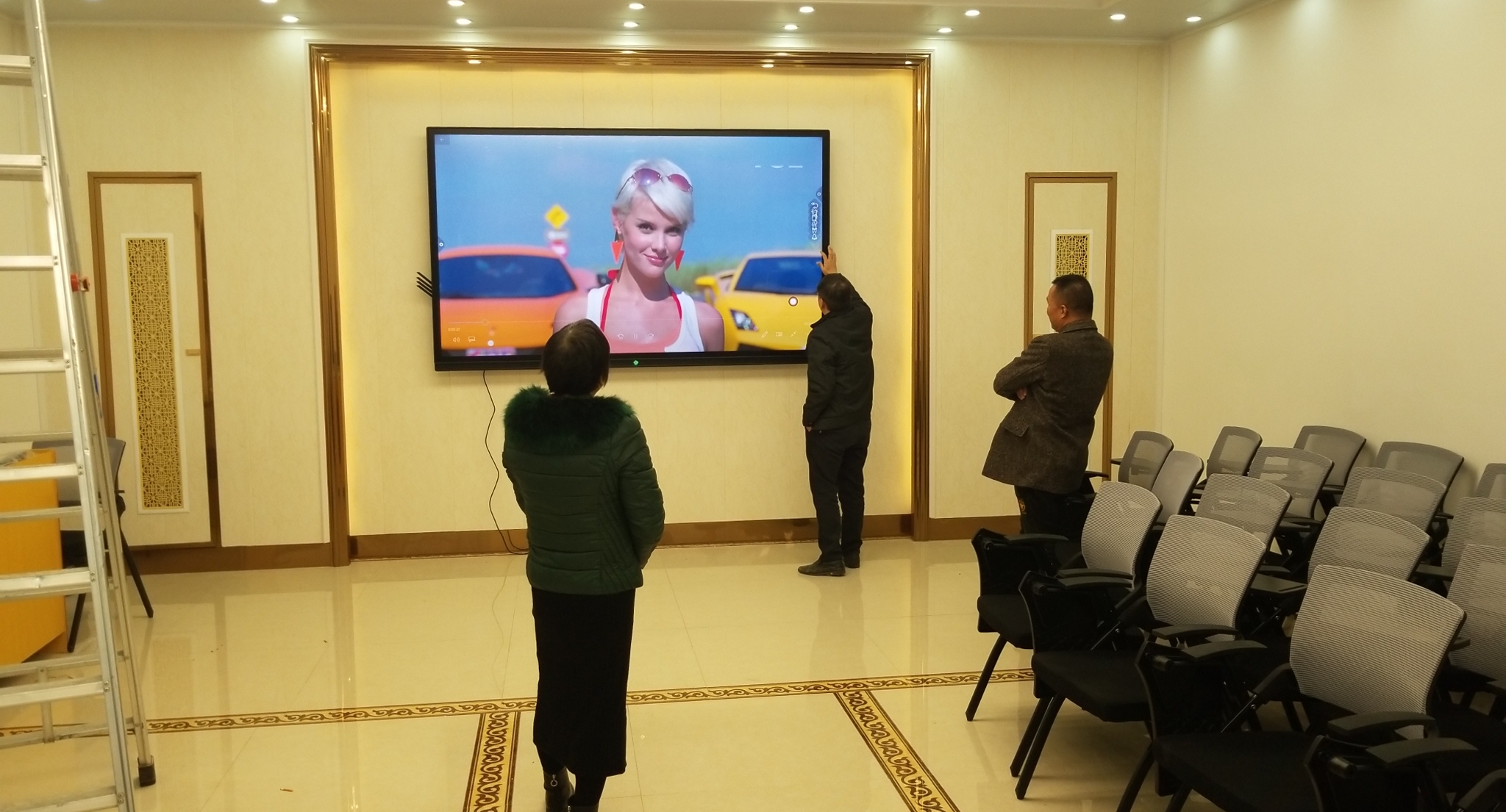 以下來自現(xiàn)場100寸雙系統(tǒng)觸控一體機(jī)安裝完成案例