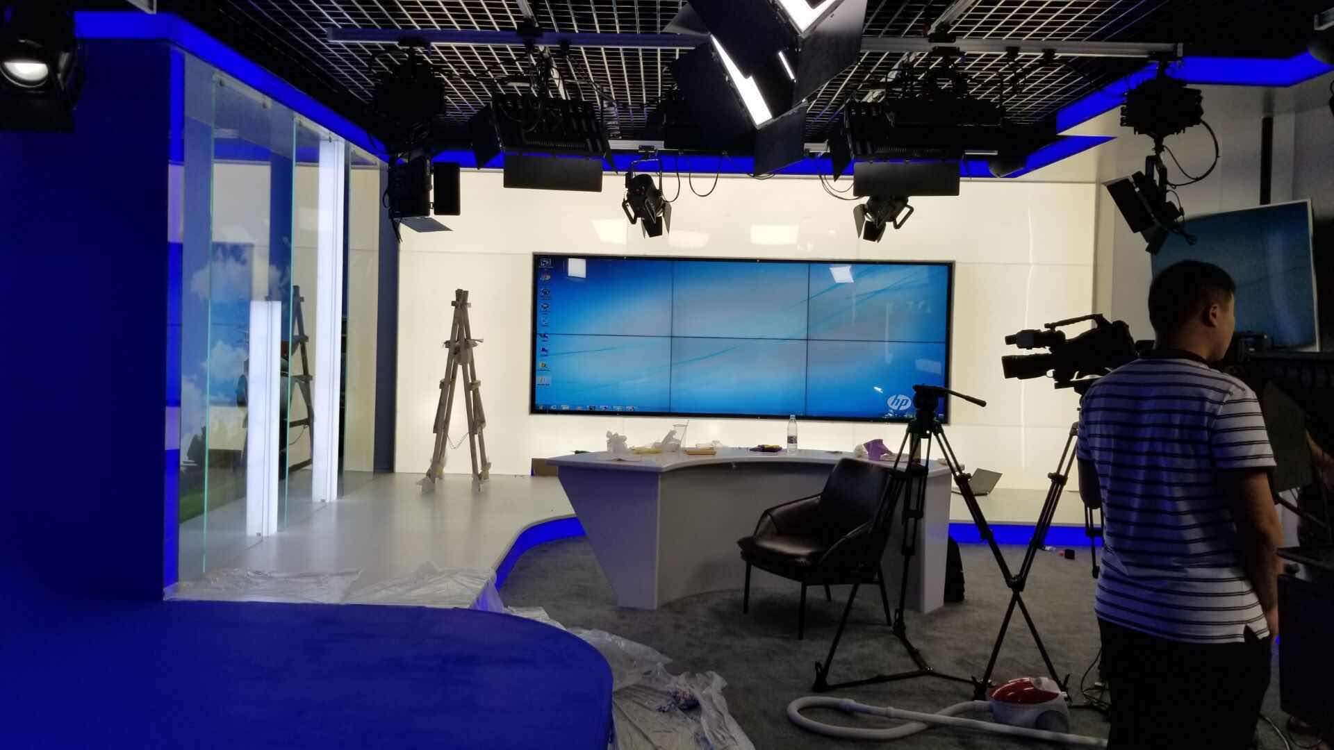 融創(chuàng)方圓55寸2×3大尺寸觸摸屏拼接屏結(jié)合定制紅外觸摸框,拼接屏,應(yīng)用在直播室/演播室用于交互演示視頻/圖片PPT文檔內(nèi)容。