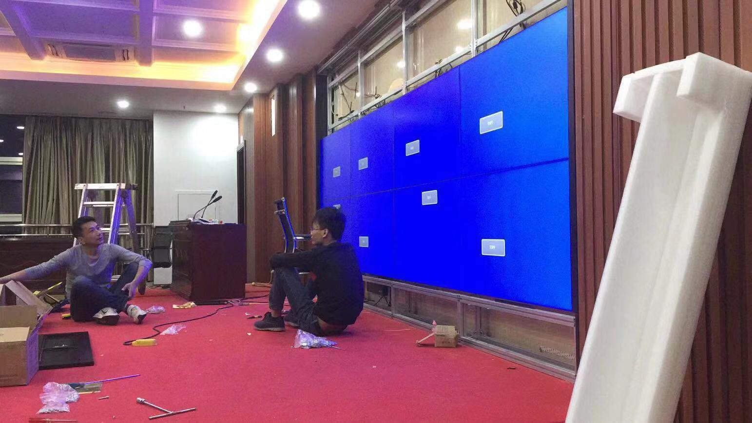 陽江第二期項目55寸3×4拼接屏觸摸屏AG玻璃互動大屏用于多媒體會議室,用于日常開會,報告,演講等應(yīng)用,選用融創(chuàng)方圓觸摸拼接屏解決方案廠家的,拼接觸摸大屏安裝后現(xiàn)場受到領(lǐng)導(dǎo)表揚與肯定。