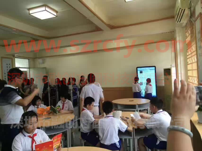 廣東天卷圖書設(shè)備有限公司采購(gòu)深圳融創(chuàng)方圓多臺(tái)55寸立式觸摸一體機(jī),將55寸高清觸摸查詢機(jī)放在廣州蘆獲西小學(xué)圖書館/南昌小學(xué)圖書館