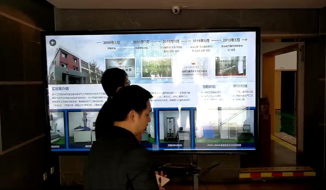 西南油氣田分公司工程技術(shù)研究院大廳98寸移動(dòng)式觸控一體機(jī)現(xiàn)場(chǎng)