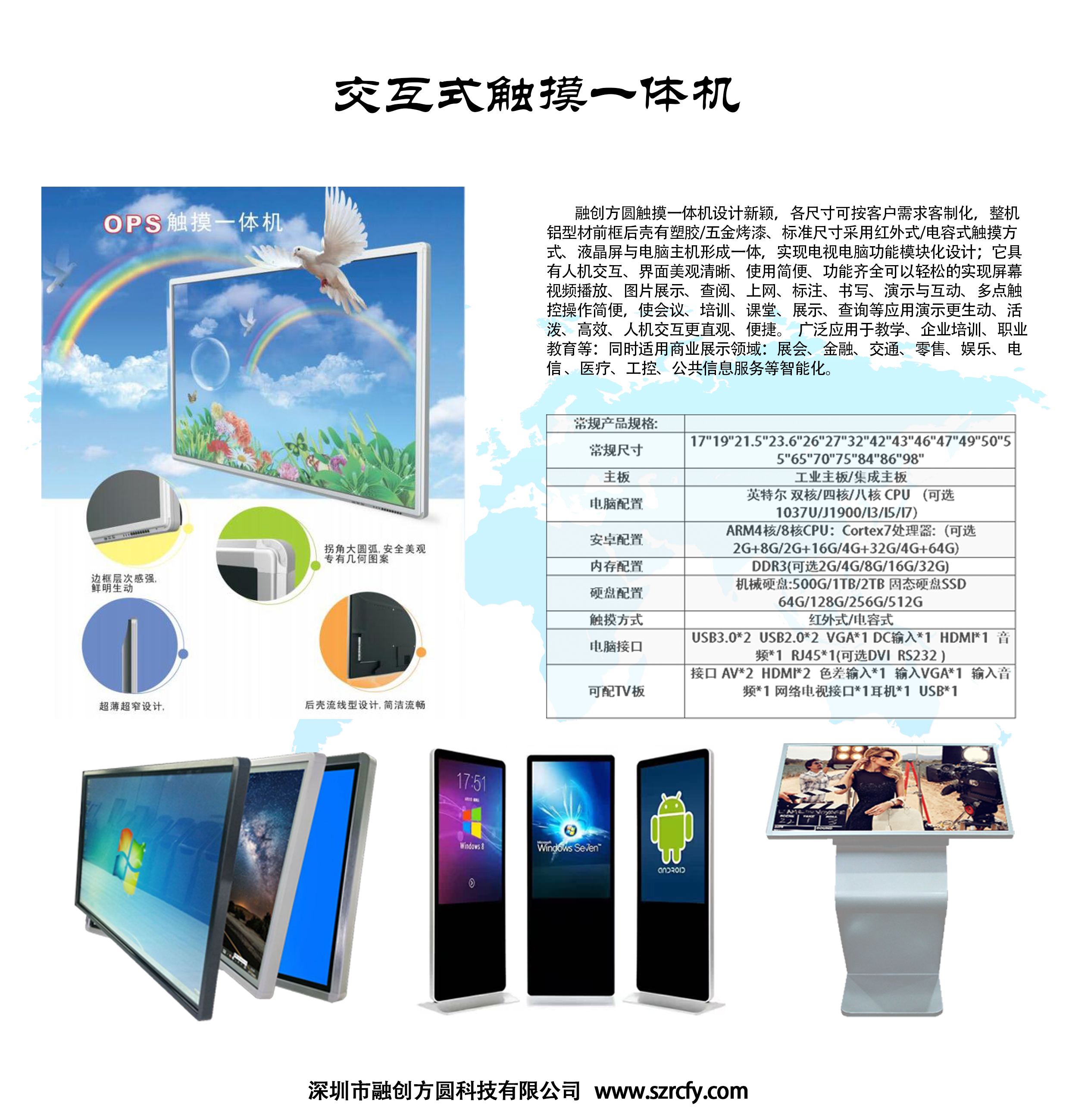 觸控一體機(jī)也是叫觸摸一體機(jī),觸摸屏一體機(jī),觸摸顯示屏,觸摸廣告機(jī)集成電腦或者安卓系統(tǒng)可選)、紅外觸摸屏、音響、多媒體、office互聯(lián)網(wǎng)等多種功能于一體的觸控屏大屏,并且擁有獨(dú)特的人機(jī)交互功能,兼容各類(lèi)實(shí)用性軟件,軟硬件結(jié)合操作簡(jiǎn)單、功能強(qiáng)大等特點(diǎn),所以在市場(chǎng)上非常受歡迎,平常在展廳,展館,大型商場(chǎng)、學(xué)校、酒店、餐廳、連鎖店、企業(yè)等等諸多場(chǎng)所都可以看到它們的身影。