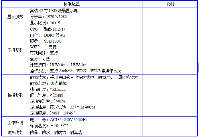 ? ?? ? ? ? ? ? ?42寸電容觸摸屏桌一體機(jī)詳細(xì)參數(shù)規(guī)格介紹