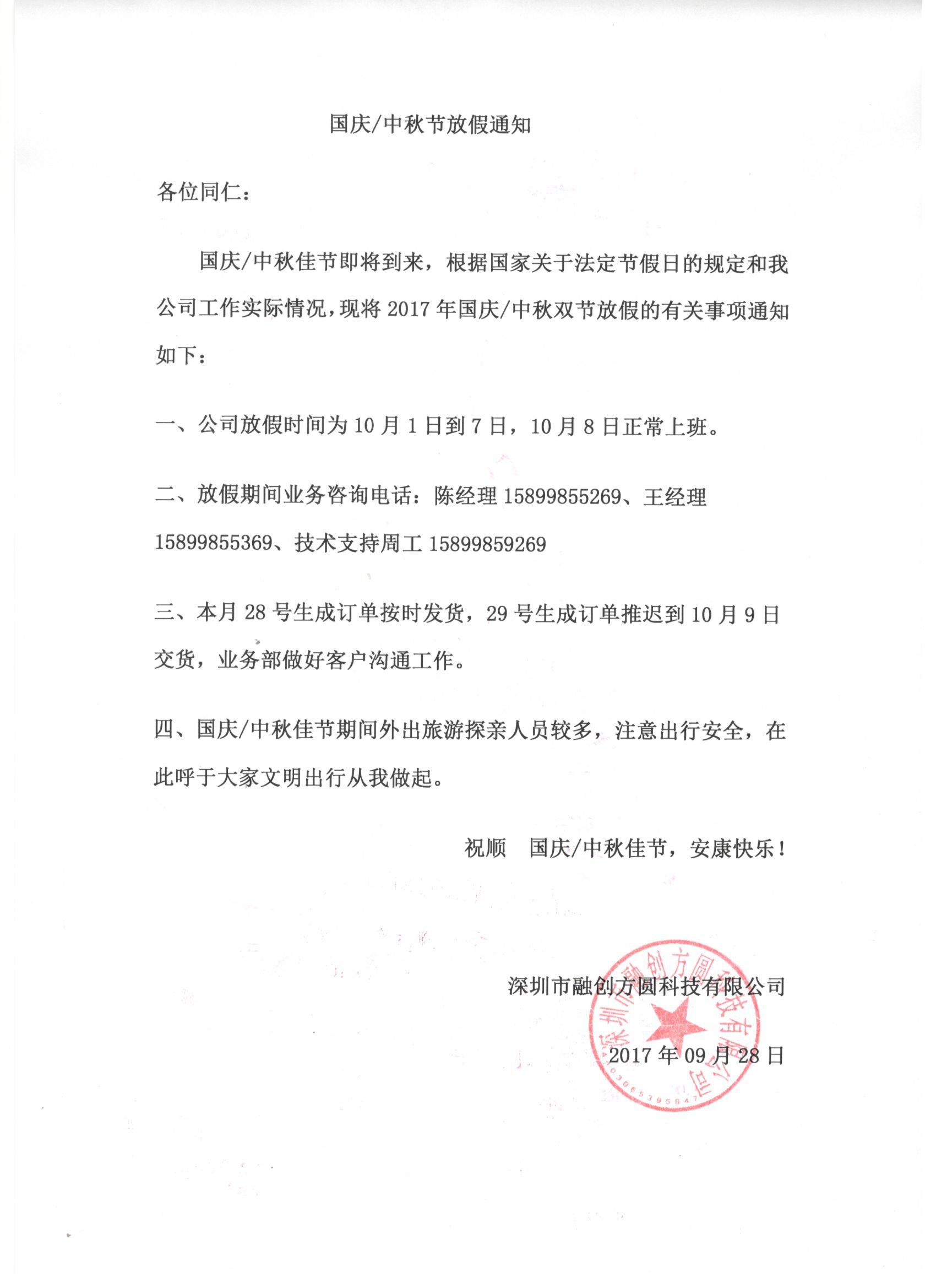 - 融創(chuàng)方圓科技春節(jié)放假通知 2016/01/05
