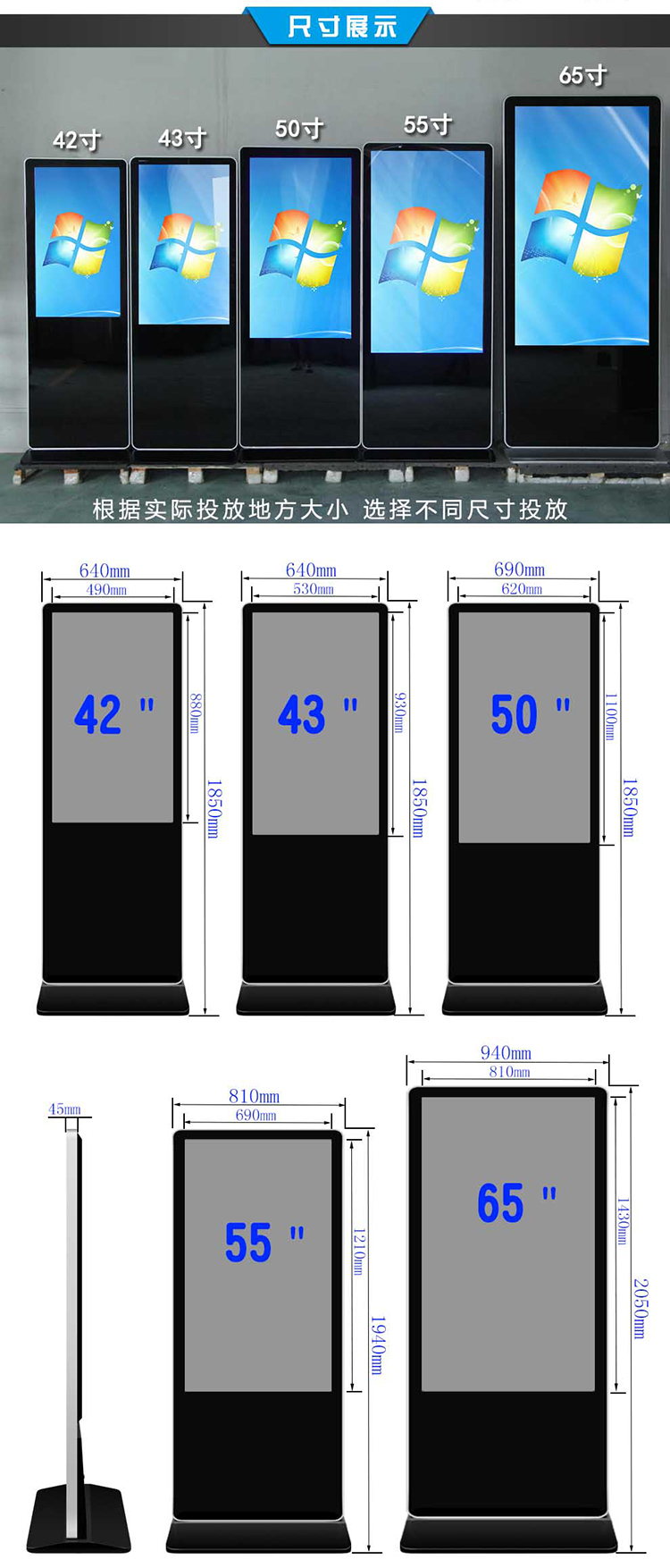 深圳市融創(chuàng)方圓科技有限公司立式觸摸一體機/紅外觸控一體機其他相關(guān)尺寸: