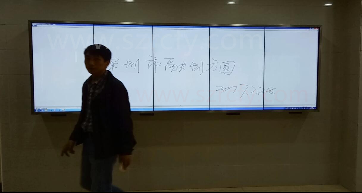 2017年2月廣州一家專業(yè)廣告?zhèn)髅焦静少?a style="color: #000000;" href="http://www.xmfangwei.cn">融創(chuàng)方圓46寸1×5豎屏拼接屏真10點觸摸屏多媒體展示墻一體機放在廣州番禺社會組織中心大廳