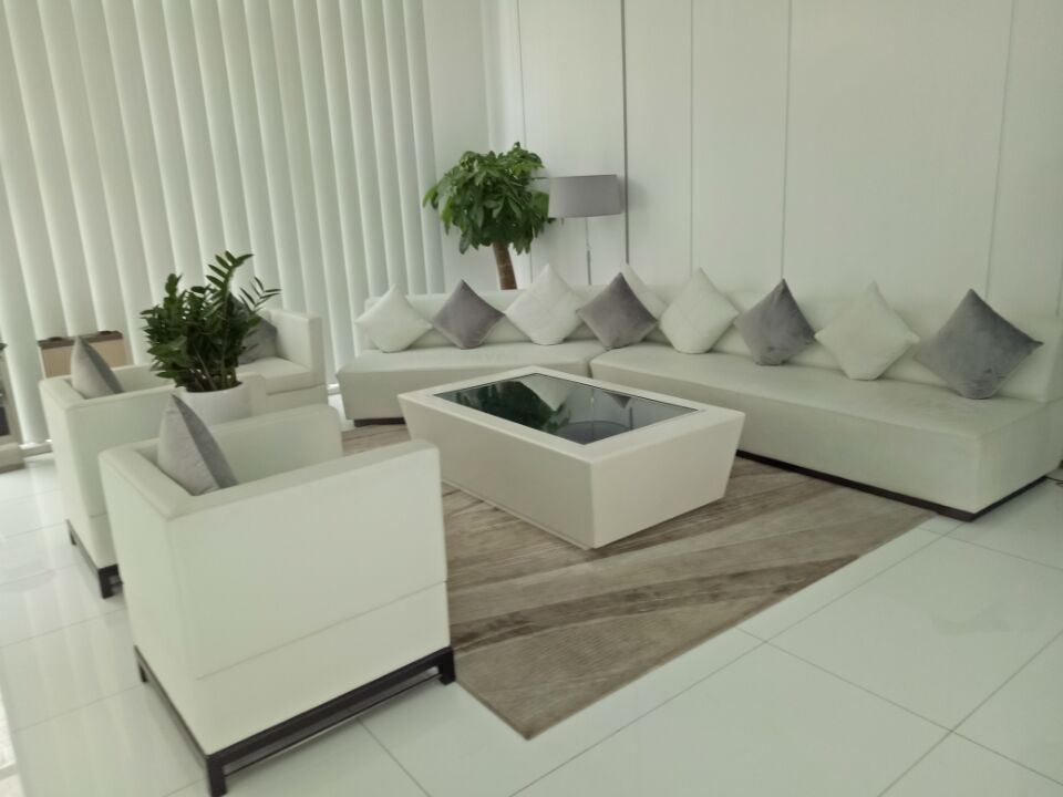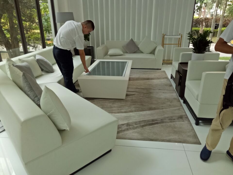 桌面造型是由裝修方公司根據(jù)55寸觸摸一體機外形尺寸定制模型,然后將55寸紅外觸摸一體機嵌入平放,形成時尚大氣觸摸桌面一體機:
