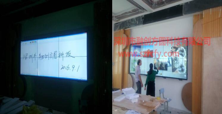 2016年9月南寧一家做集成弱電公司采購融創(chuàng)方圓品牌55寸3.5mm超大窄邊拼接多點(diǎn)觸摸教學(xué)墻入駐南寧秀安小學(xué)多媒體課室