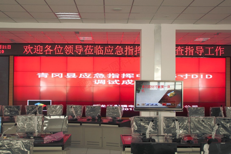 青岡縣應(yīng)急指揮中心55寸觸摸查詢互動(dòng)系統(tǒng),55寸4x8DID液晶屏拼接顯示墻:
