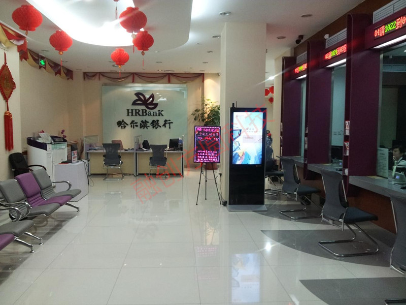 哈爾濱銀行大廳42寸立式觸摸查詢廣告一體機(jī):